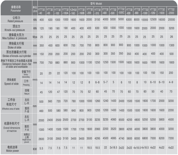 產(chǎn)品介紹:性能特點:計算機優(yōu)化結(jié)構(gòu)設(shè)計,三梁四柱式結(jié)構(gòu),簡單、經(jīng)濟、實用;液壓控制采用插裝閥集成系統(tǒng),動作可靠,使用壽命長,液壓沖擊小,減少了連結(jié)管路與泄漏點;獨立的電氣控制系統(tǒng),工作可靠,動作直觀,維修方便;采用按鈕集中控制,具有調(diào)整、半自動兩種操作方式;通